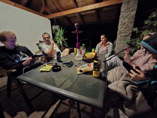 V odpoledních hodinách nás přišla navštívit Fanyho drahá polovička Andílek, která s námi zůstala až do odjezdu druhý den. Ve večerních hodinách jsme si už v plné sestavě dali vodní dýmku a něco málo k pití. Po 22 h jsme už ovšem pokračovali pouze ve čtyřech, jelikož část strategicky zmizela si odpočinout po náročném dni.