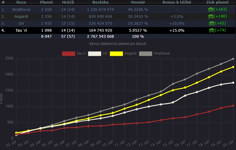 Drobně se od pomyslného vláčku odpojuje rasa Wraithů. Rasy v závěsu jistě začnou vymýšlet jak ji přibrzdit, dokud to ještě vůbec jde.